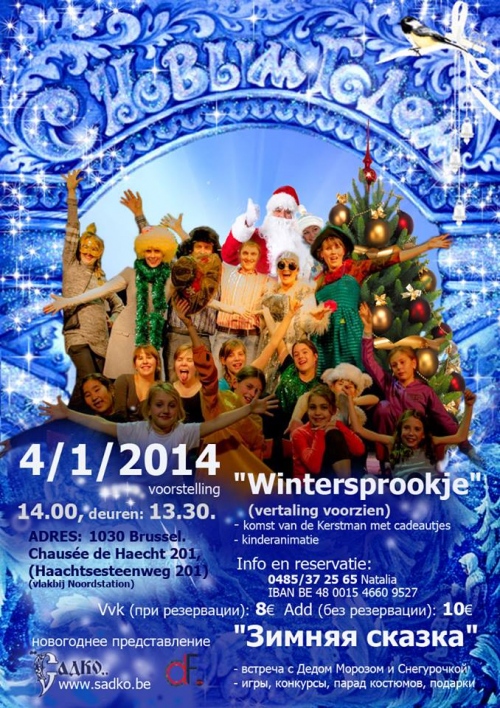 Voorstellig « Wintersprookjes » (vertaling voorzien). - встреча с Дедом Морозом и Скнегурочкой - игры, конкурсы, парад костюмов, подарки - komst van de Kerstman met cadeautjes - kinderanimatie