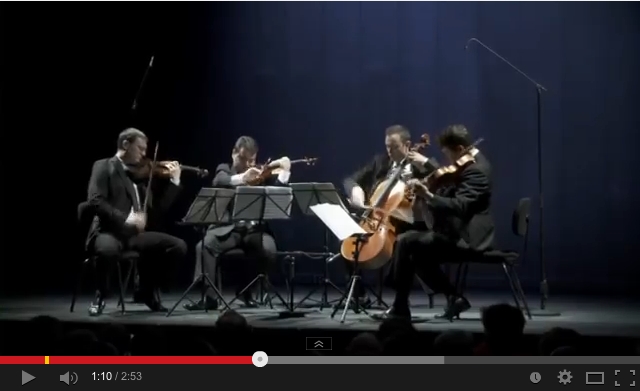 Production Bozar Music Jerusalem String Quartet Dmitry Shostakovich Quatuor à cordes n° 10, op. 118, Quatuor à cordes n° 11, op. 122, Quatuor à cordes n° 12, op. 133 Dans la très riche littérature pour quatuors à cordes, le corpus (15 chefs-d’œuvre !) de Dmitri Chostakovitch est un incontournable, monument unique composé au cœur du XXe siècle. Il couvre toute la période de maturité du compositeur russe. Le premier quatuor est composé relativement tard, en 1938 : à l’époque, Chostakovitch avait 32 ans et était déjà l’auteur de 5 symphonies et de 3 ballets. La dernière œuvre du genre date de 1974, quelques mois avant la mort du compositeur. Ces quatuors s’entendent comme le témoignage poignant d’un homme et compositeur ayant vécu les années les plus noires de la dictature stalinienne. Reference : The Chamber Music Society of Lincoln Center http://www.youtube.com/watch?v=jzgoSryWzDs<:a>
