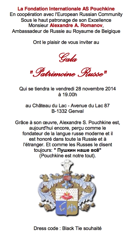 October 2014 : Calendrier d'événements relatifs à la culture russe.Voici le lien vers la liste des 53 événements culturels déjà enregistrés pour ce mois de novembre 2014. Notons que décembre rassemble déjà 21 annonces et l'année 2015 en compte 31. Impossible donc de tout citer dans ce texte! Ne nous en tenez pas rigueur. Alors que la troupe Koukouchechka de Bobrouisk poursuit sa tournée, Julietta propose déjà une petite soirée en chansons ce 7 novembre au Sans Interdit. Nous avons été ravis d'assister au tout premier concert donné par sa toute nouvelle asbl Triomphe de l'Art et dont Radio-Rubel a assuré le reportage. Le lendemain 8 novembre « Parfum d’Ambre » nous invite à son double événement qui met l'âme slave à l'honneur. Nous aimons annoncer les concerts parisiens de Natacha ainsi bientôt son Récital Fusion puis Sainte-Cécile. Nos amis liégeois nous offrent une soirée russe au musée du Fort à Boncelles, tandis que Halinka nous revient à Bruxelles avec son expo « Détails pierre - bronze ». Enfin, ne rater sous aucun prétexte le 28 novembre le prestigieux Gala « Patrimoine Russe » au Château du Lac à Genval ainsi que le 25 novembre la petite prestation de notre chorale « Rossa i Nota » en l'Eglise Sainte-Alix de Woluwé-Saint-Pierre. | |
