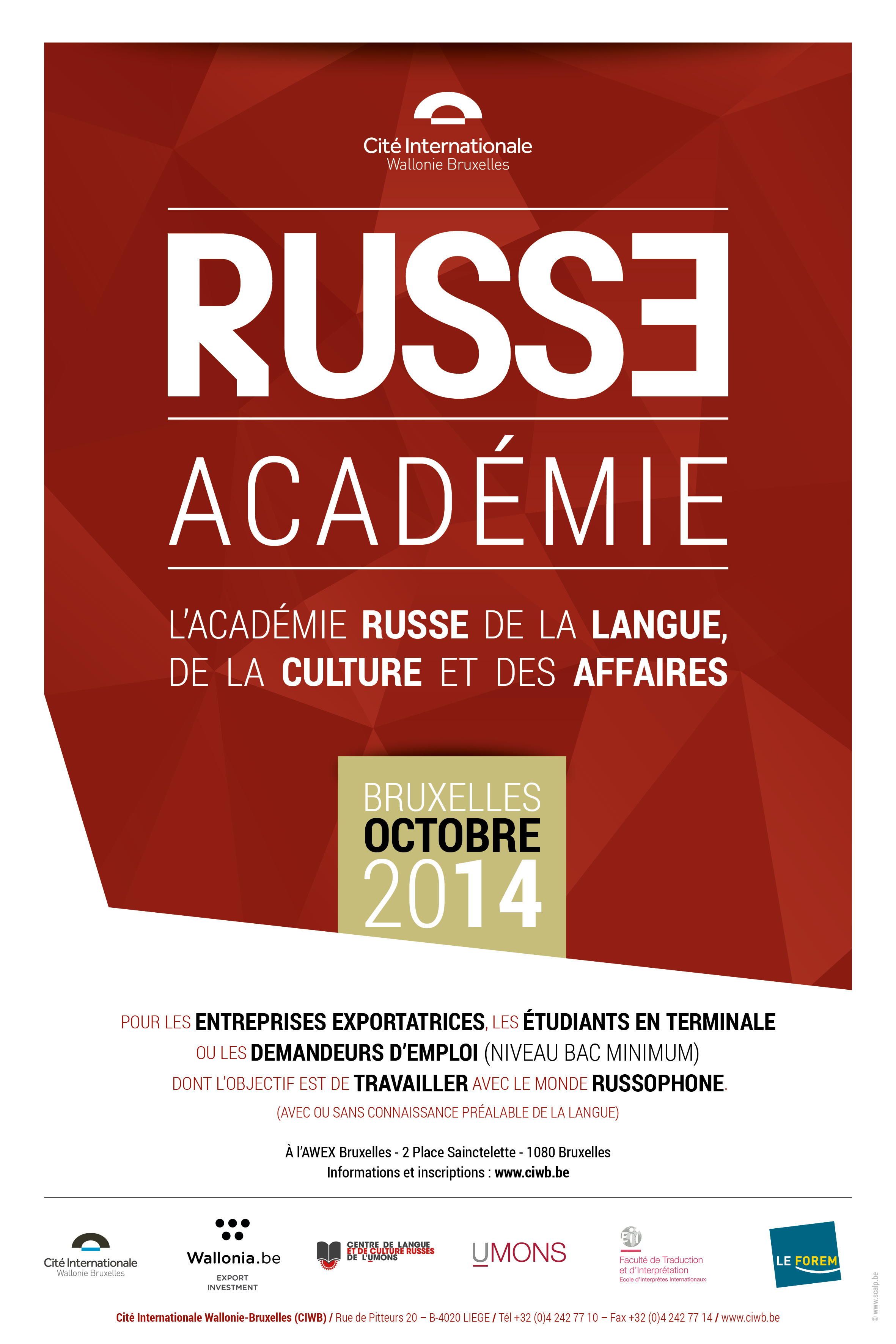 October 2014 : Calendrier d'événements relatifs à la culture russe.Voici le lien vers la liste des 53 événements culturels déjà enregistrés pour ce mois de novembre 2014. Notons que décembre rassemble déjà 21 annonces et l'année 2015 en compte 31. Impossible donc de tout citer dans ce texte! Ne nous en tenez pas rigueur. Alors que la troupe Koukouchechka de Bobrouisk poursuit sa tournée, Julietta propose déjà une petite soirée en chansons ce 7 novembre au Sans Interdit. Nous avons été ravis d'assister au tout premier concert donné par sa toute nouvelle asbl Triomphe de l'Art et dont Radio-Rubel a assuré le reportage. Le lendemain 8 novembre « Parfum d’Ambre » nous invite à son double événement qui met l'âme slave à l'honneur. Nous aimons annoncer les concerts parisiens de Natacha ainsi bientôt son Récital Fusion puis Sainte-Cécile. Nos amis liégeois nous offrent une soirée russe au musée du Fort à Boncelles, tandis que Halinka nous revient à Bruxelles avec son expo « Détails pierre - bronze ». Enfin, ne rater sous aucun prétexte le 28 novembre le prestigieux Gala « Patrimoine Russe » au Château du Lac à Genval ainsi que le 25 novembre la petite prestation de notre chorale « Rossa i Nota » en l'Eglise Sainte-Alix de Woluwé-Saint-Pierre. | |