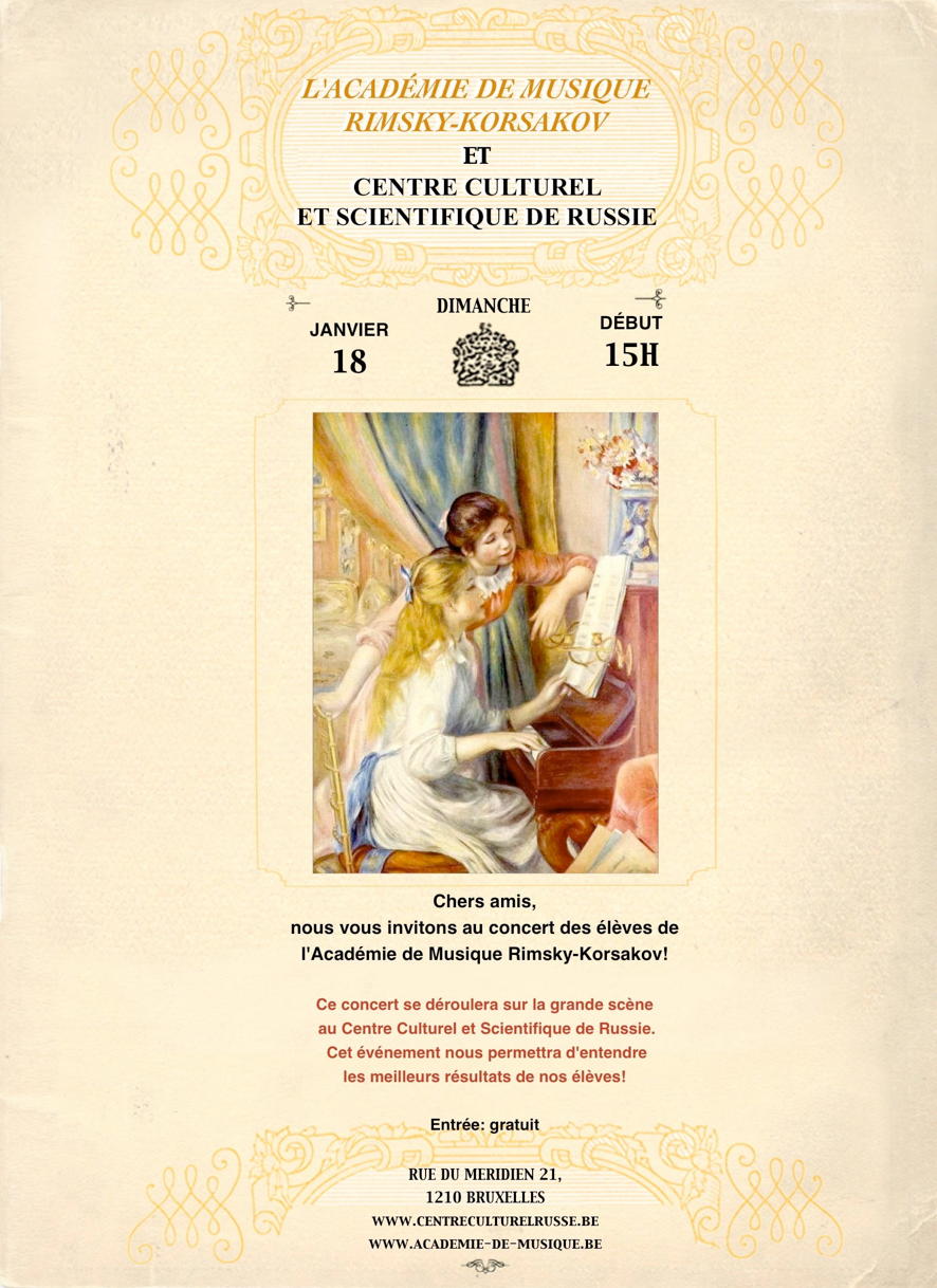 donné sous la direction du chef de choeur, Pierre Rosniansky. Echange des voeux et réception à l'occasion du Nouvel An. Présentation de « Rossa i Nota . Ensemble vocal russe d'hommes disponible pour les membres.