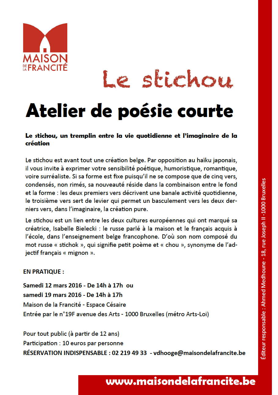 du jeudi 10 mars 2016 au mercredi 6 avril 2016 Maandag-donderdag 9 -19 uur / vrijdag 9 - 17 uur