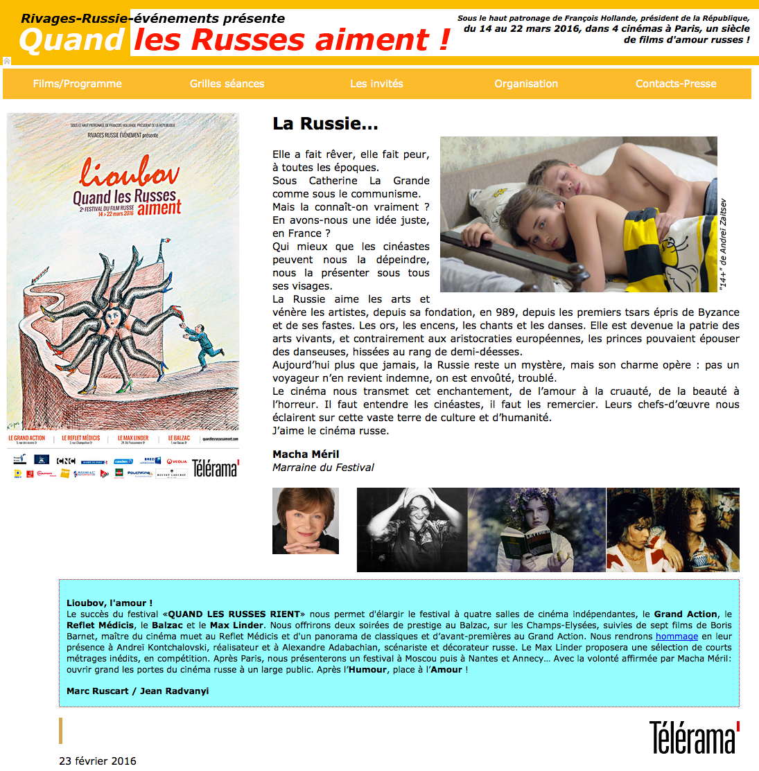 Mars 2016 : calendrier d'événements relatifs à la culture russe.