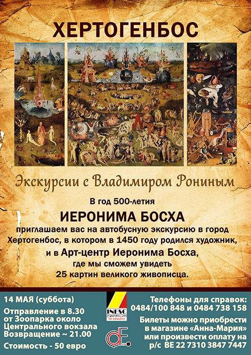 Вход : 35€ ( резервация обязательна) | Cost : 35€ (reservation is obligatory) Вышеуказанную сумму необходимо перечислить на счет ассоциации по реквизитам: « Belarus Today », Belfius Bank IBAN : BE11 0634 2178 6448, указав фамилию, количество гостей и назначение платежа « Concert » За подробной информацией о мероприятии обращаться по э-почте : belarustoday at telenet dot be