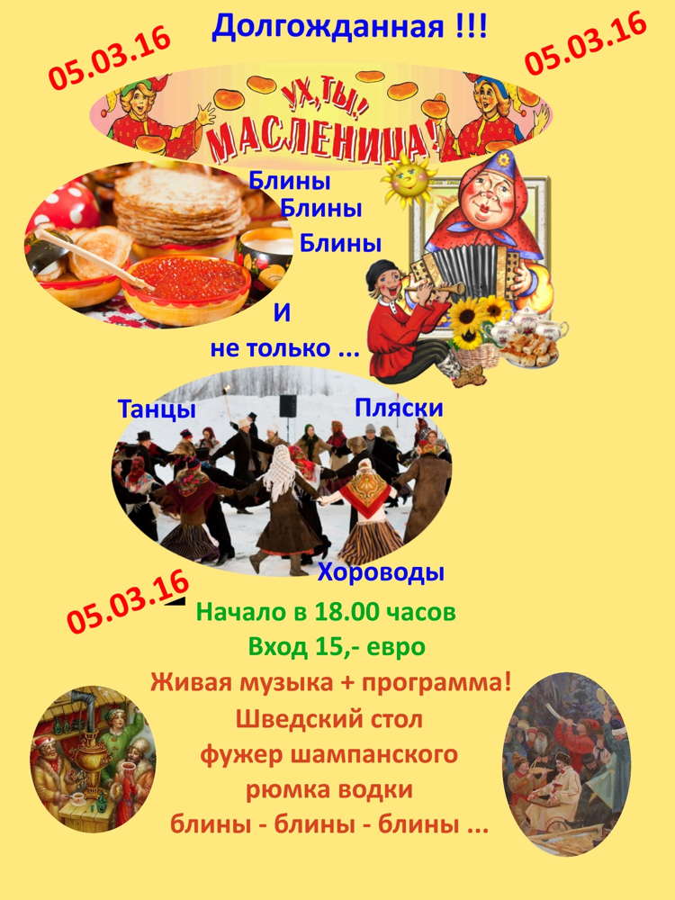 le samedi 5 mars 2016 Начало вечера в 18 часов