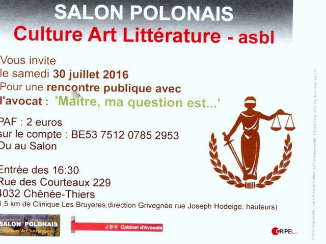 Invitation. Maître, ma question est... Salon Polonais - Culture Art Littérature. 2016-07-30