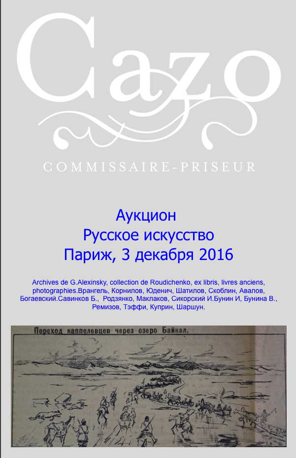Русский Новогодныии Аукцон Закрытие сезона! [ВИД ПЕТЕРБУРГА ПУШКИНСКОГО ВРЕМЕНИ, ПОСВЯЩЕНИЕ КАРСАВИНОЙ ЛИФАРЮ, ЛИФАРЬ И ПИКАССО, КНИГИ ИЗ ЗНАМЕНИТЫХ БИБЛИОТЕК, ЛИЧНАЯ ПЕЧАТЬ МАСОНА КНЯЗЯ ЛОПУХИНА, НЕИЗВЕСТНОЕ ПИСЬМО ЧЕХОВА и многое другое...] Дорогие друзья! Приглашаем вас принять участие в нашем предновогоднем аукционе, который состоится ровно через неделю в Париже 23 декабря: "РОССИЯ, ЛЕТА, ЛОРЕЛЕЯ..." РУССКОЕ ИСКУССТВО, СТАРИННЫЕ КНИГИ, АВТОГРАФЫ И ПРЕДМЕТЫ ИСТОРИИ Начало торгов в 16 часов. Аукцион пройдет у нас в галерее по адресу: 3, rue d'Amboise - 75002 Paris (в двух шагах от Друо). Там же вы сможете ознакомиться с лотами на выставке 22 декабря. Возможен частный просмотр по предварительной договоренности. Ссылка для скачивания нашего каталога в двух версиях: 1) "легкой"; 2) с высоким качеством картинок (в формате ПДФ): https://www.wetransfer.com/ downloads/ 688df52d2d337e11ccb9a174d16f08 5020161215215310/ da71540a005eb00cf5786472e816d3 6320161215215310/b70c74По всем вопросам, пожалуйста, обращайтесь к Александре Гамалий (alex.gamaliy@gmail.com ; tel. +33677074811) или к Артуру Гамалий (art.gamaliy@gmail.com). Будем рады вашему участию. Mesdames, Messieurs, Nous sommes heureux de vous annoncer la sortie du catalogue de notre vente russe du vendredi 23 décembre: LA RUSSIE, LE LÉTHÉ, LORELEI... LA RUSSIE, SON ART ET SON HISTOIRE VENTE RUSSE DE NOËL Nous vous invitons à telecharger le catalogue de la vente en haute définition en allant sur le lien : https://www.wetransfer.com/ downloads/ 688df52d2d337e11ccb9a174d16f08 5020161215215310/ da71540a005eb00cf5786472e816d3 6320161215215310/b70c74