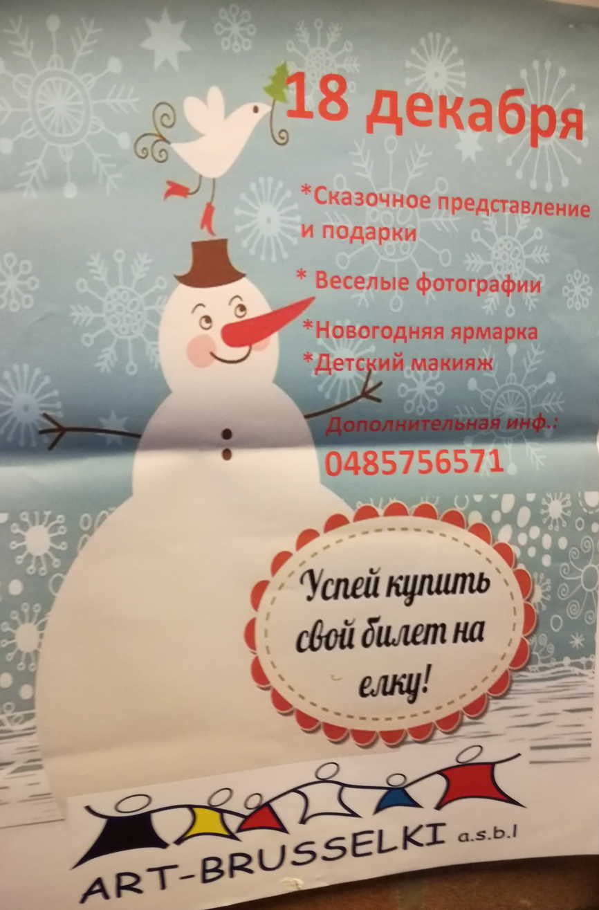 Art-Brusselski asbl - Ассоциация русскоязычных родителей « Брюссельки » Новогодняя сказка - это наше детство. Но чудеса бывают не только в сказке. Вчера 18 ноября был День рождения Деда Мороза! А ровно через месяц 18 декабря Дед Мороз приедет к нам на праздник, не пропустите это события! С 10 утра Вас ждёт ярмарка новогодних подарков, фотографии с новогодними персонажами, почта Деда Мороза, аква-грим, весёлые конкурсы и призы. Конечио же новогодняя сказка с Дедушкой Морозом и Снегурочкой и долгожданные подарки.