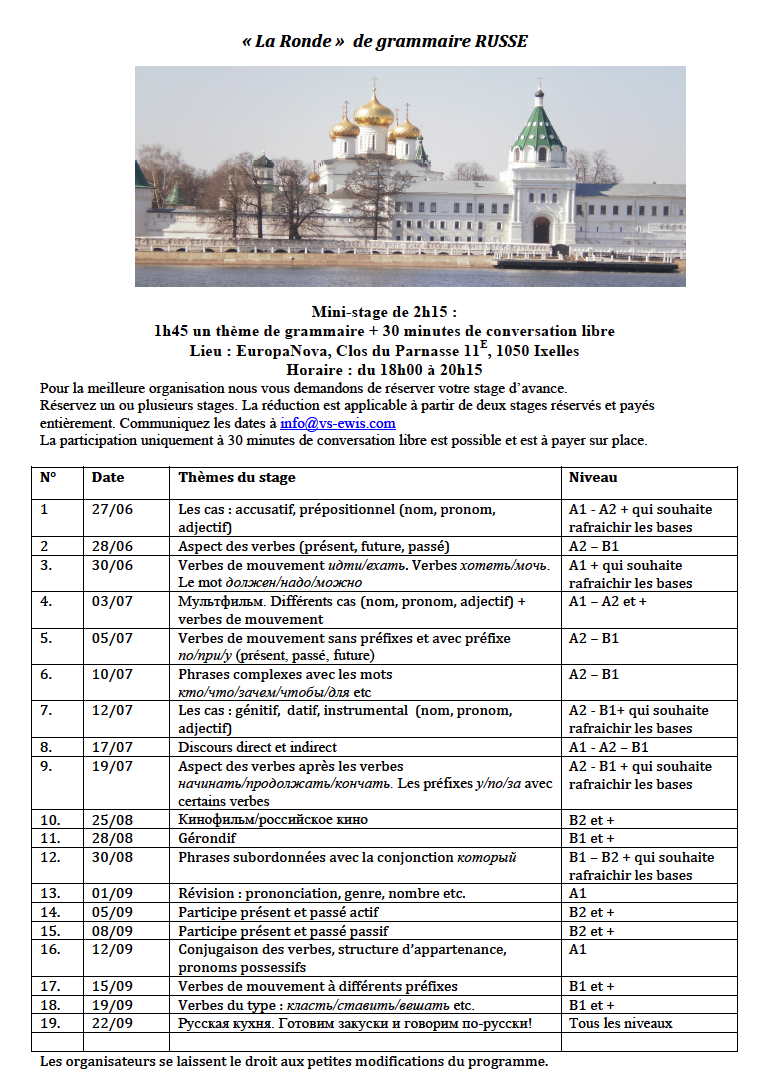 Pour toute information détaillée : les dates, les thèmes des stages et le paiement, adressez-vous à : Vera Smirnova info at vs-ewis.com mobile : 0473 94 01 75