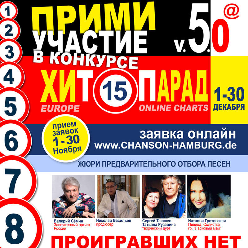 музыкальный онлайн конкурс « Хит-Парад ТОП-15 » - 2017!