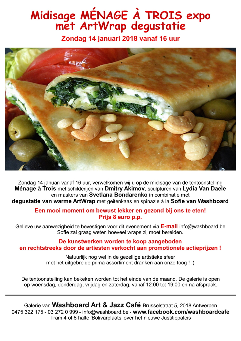 Evénements de janvier 2018 : 5-31 => Ménage à trois - Expo (Antwerpen) 6 => Traditionnel Nouvel An russe (Luxembourg) 7 => Carmina Burana (Gent, Forest, Antwerpen) 7,13,20,26 => Activités ARINA (Bruxelles/Antwerpen) 11/1-11/2 => Exploration du Monde - Russie (Différents lieux en Belgique) 13 => Рождество и Старый Новый Год! (Francfort) 17-21 => Festival films Géorgie, Ukraine, Arménie, Azerbaïdjan, Moldavie et Biélorussie (Bruxelles) 20/1-19/6 => Célébrations bicentenaire Ivan Tourguéniev (Bougival) 21 => Ballet Romeo and Juliet (Kinepolis) 21 => Concert Ivan Thirion / Julietta Kocharova (Jette) 24/1-21/5 => Soviet Design. Red Wealth (Laken) 27 => Belarus 4'33. Sun City of Dream Point Zero (Bruxelles) Suivis : Colloque 1917-2017 : Espoirs, utopies et héritages de la Révolution russe (Saint-Gilles) Inauguration statue à la mémoire des victimes de la révolution et du régime soviétique (Uccle)