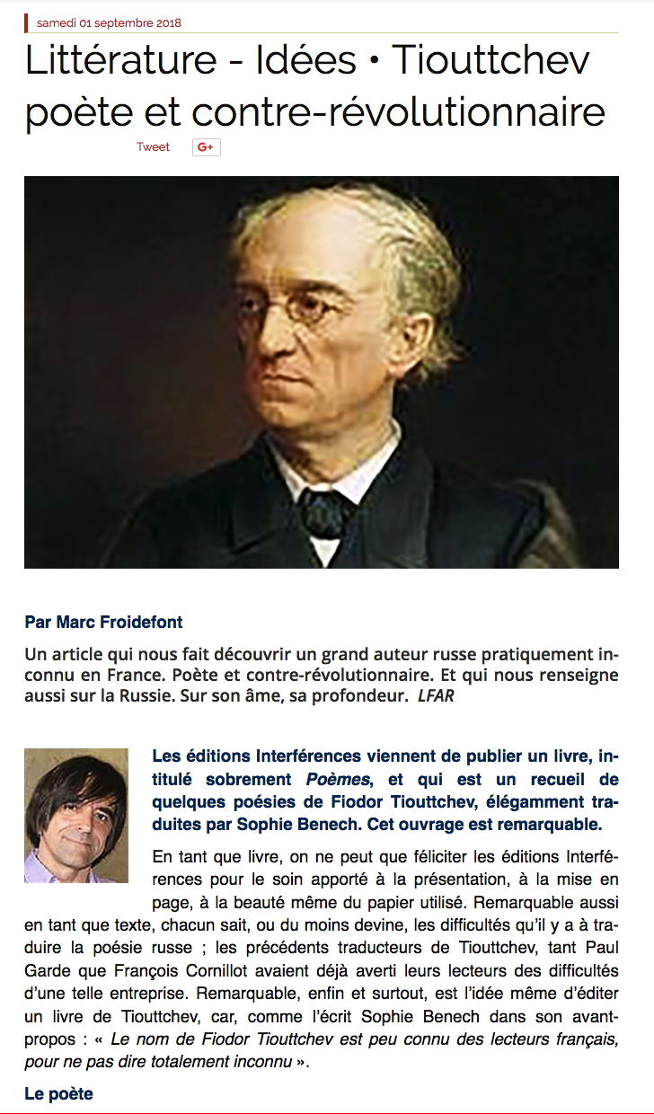 • Tourguéniev sous toutes les facettes. Quelques textes peu connus à l’occasion de son bicentenaire :
