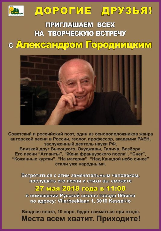 1 => Poësie op muziek als bloesems midden de terreur (Gent) 2-3 => Concert chorale et orchestre - Saison russe (Bougival) 2 => Wandelgangen van het Geheugen (Gent) 2 => SJOOT (Auderghem) 2 => Anton Tchekhov (Bougival) 2 => Vente Art russe (Paris) 2-3 => Экскурсия Прекрасный Париж (Paris) 2 => Вечер/лекция Татьяны Толстой (Bruxelles) 2 => « Спаси и сохрани » (Sossenheim) 3,9-10,17,23 => Table/Atelier langue russe (Nivelles) 3 => Musée « Игрушечная история » (Bruxelles) 4/6 => Barbusse, Merejkovski, Robakidze (Paris) 5 => France, Manifeste écologique et social (Bruxelles) 6 => Movie Sobibor. Собибор (Bruxelles) 6 => Экскурсия Pieter Brueghel (Bruxelles) 7 => Au cœur du Kremlin (Bruxelles) 7 => FPPR - Assemblée générale statutaire (Bruxelles) 7 => Boris Godounov (Hechtel-Eksel) 9 => Бизнес в Бельгии (Ixelles) 9 => Один мужчина и одна женщина (Antwerpen) 10 => Ballet Live 2018 : Coppélia (Kinepolis) 10 => Экскурсия с Владимиром Рониным (Maastricht). 11-17 => Неделя Импульс (Sint-Pieters-Woluwe) 14 => Mondial Russie-Arabie Saoudite (Bruxelles/Namur) 14 => Over Moscou (Schilde) 15 => Death of Stalin (Aalst) 16-17 => Экскурсия Франция (Mont Saint-Michel) 16 => Экскурсия « Рубенс » (Antwerpen) 18 => Voordracht DCV « Rusland » (Harelbeke) 19 => Mondial Egypte-Russie (Saint-Pétersbourg) 19 => Glinka, Rachmaninov, Hypollitov-Ivanov (Bougival) 21 => Concert musique classique (Woluwé-Saint-Pierre) 21 => Over Siberië (Schilde) 21-26 => Конкурс по гамбурскому счёту (Hambourg) 22 => Wij Kleuren Rood Liefde versus Oorlog (Gent) 23 => Закрытие сезона (Sossenheim) 25 => Concert Nikita Gratchev (Mechelen) 25 => Mondial Uruguay-Russie (Iekaterinbourg) 26 => Russian North White Movement & Civil War (Madison) 29-30 => Hermitage Fine Art auction (Monaco)