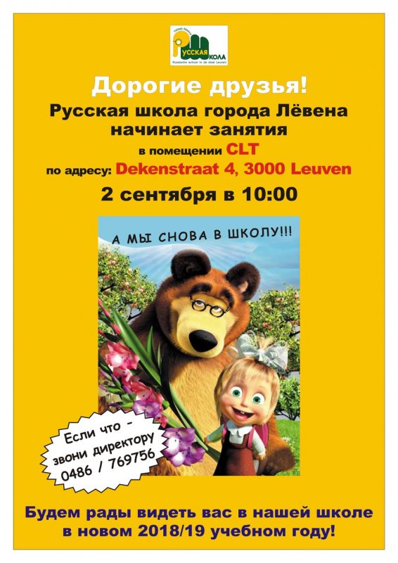 Дорогие друзья! Будем рады видеть вас в нашей школе в новом 2018/19 учебном году! Если что - звони директору.