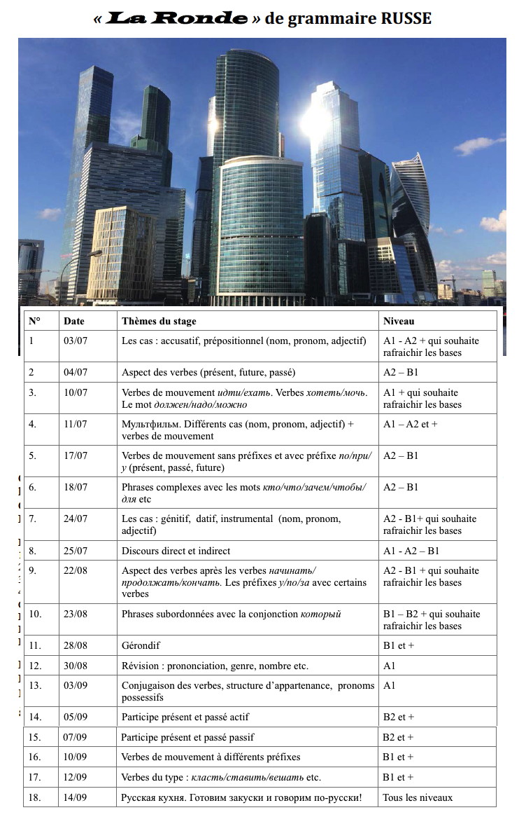 Description du cours de la langue russe - dépliant format .docx