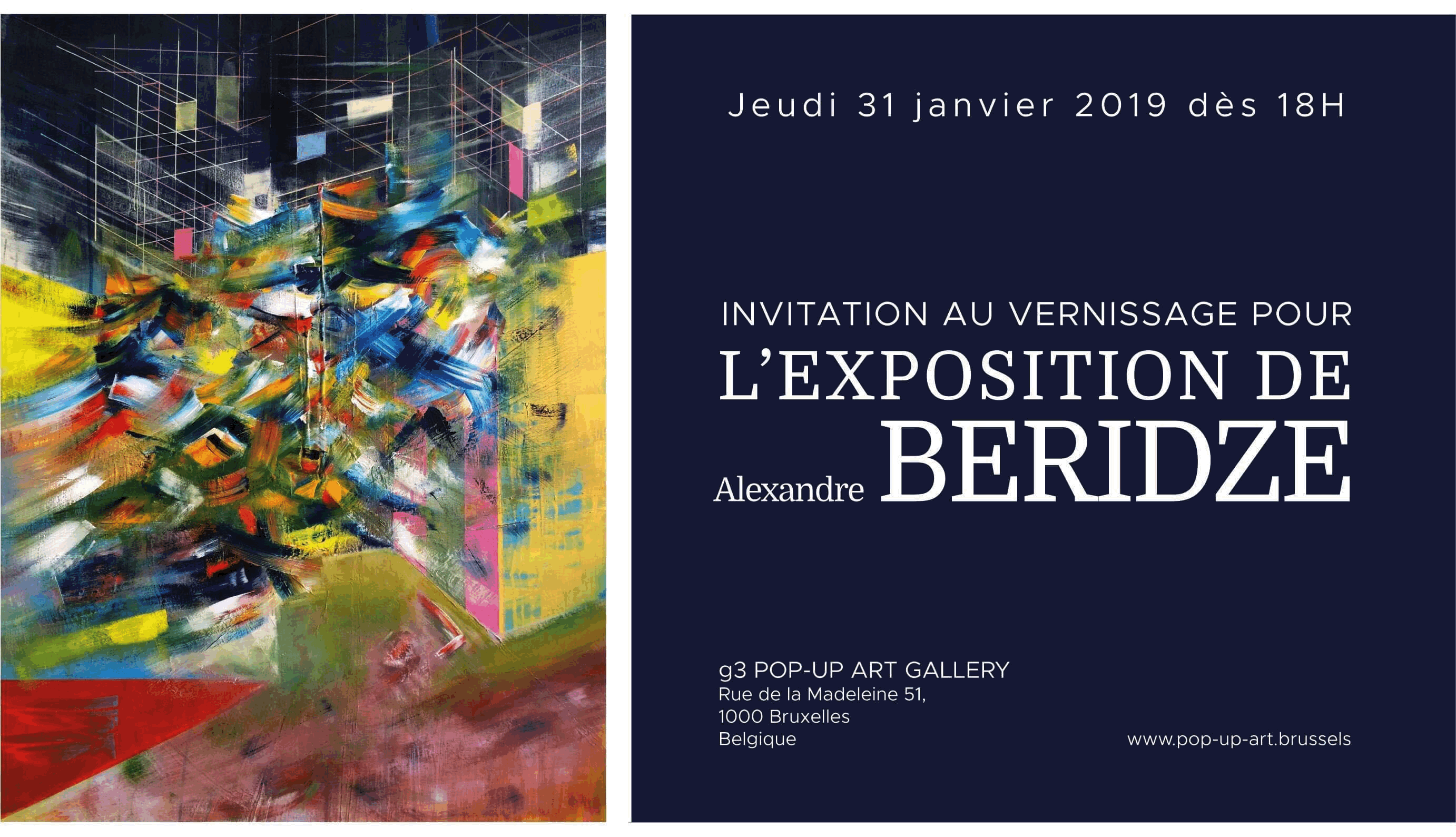 Invitation. Pop-up Art Gallery. Exposition d|œuvres picturales d|Alexandre Beridze. 2019-01-31