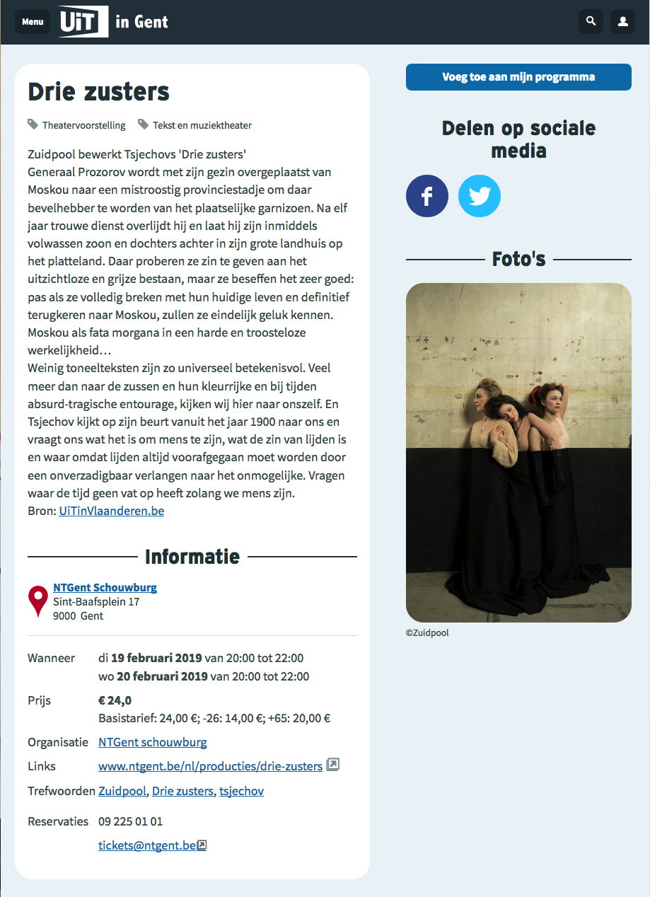 Сайт/Site : https://www.ccdesteiger.be/nl/programma/theater/zuidpool-drie-zusters.html