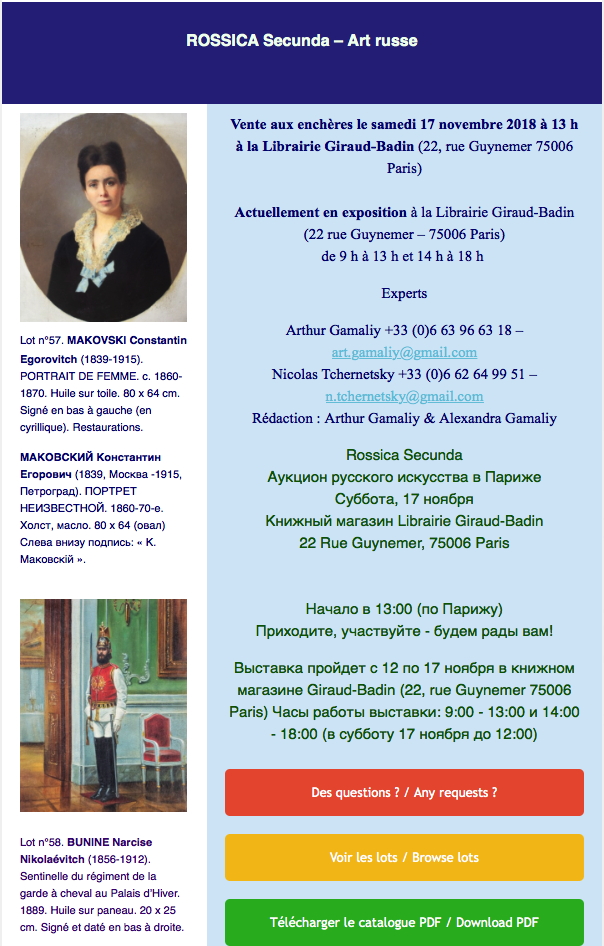 Cyrille Boulay, Expert Art Russe & Souvenirs Historiques Membre de la Fédération Nationale d’Experts Professionnels Spécialisés en Art Membre de la Confédération Européenne des Experts d’Art www.cyrilleboulay.com / Tél. 06 12 92 40 74 / Courriel : cyrille.boulay at wanadoo.fr