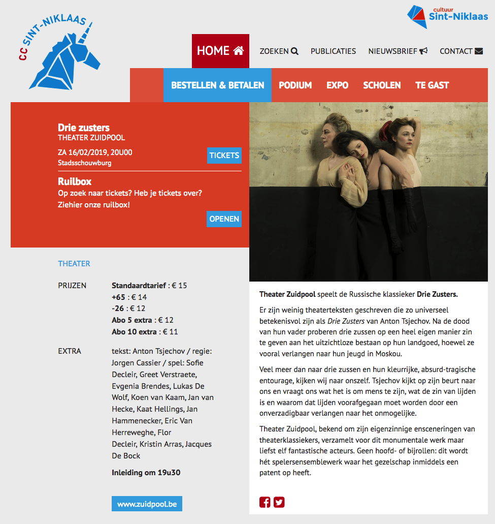 Сайт/Site : https://www.ccdesteiger.be/nl/programma/theater/zuidpool-drie-zusters.html