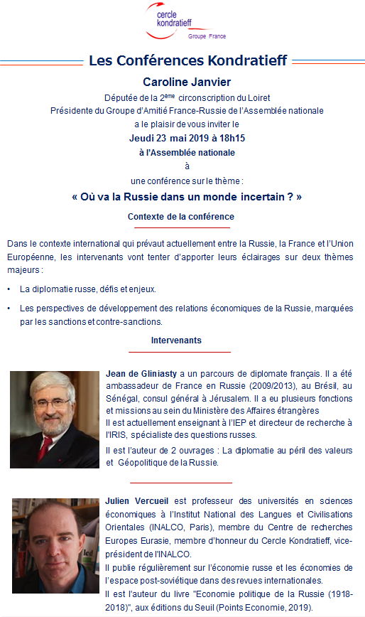 Mai 2019 => Calendrier d'événements à caractère culturel russe.