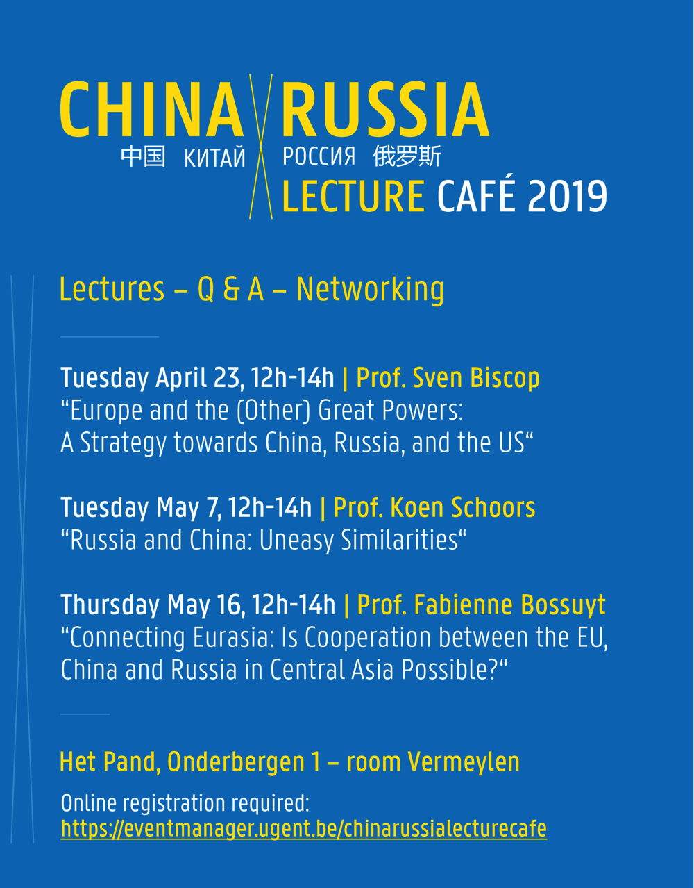 => 19/4 Black Horizon (Charleroi) => 1/6 Une saison russe (Thonon-les-Bains) => 1/6 Les russes Blancs de la Riviera (Saint-Jean de Braye) => 1/7 Exposition Rouge : Art et utopie au pays des Soviets (Paris) 1 => La Pâque Russe (F-75004 Paris) 1 => Communiqué Gallipoli (Paris/Bxl) 2,9,16,23 => Géopolitique Russie (WSL) 2 => 50 ans d'amour conjugal (Watermael) 3 => 2 tickets back (Liège) 4-5 => Excursion Baden-Baden/Strasbourg 5 => Action régiment immortel (Liège) 5,11 => Сказ о Егории Храбром (Leuven/Bxl/Antwerpen) 7-9 => SEAFOOD expo (Bruxelles) 7 => Russia & China - uneasy similarities (Gent) 7 => Кыся (Amstelveen) 8 => Donbas Residents' Response to UK & RU media (Gent) 9,16,21 => Volga éternelle (Saint-Péterbourg/Moscou) 9 => In memoriam (Evere) 10 => Александр Городницкий (Francfort) 10 => Ecrivains russes dans l'émigration (Ixelles) 11,15 => Au fil des fleuves de Russie (Saint-Péterbourg/Moscou) 11 => Golems de Bruno Schulz (Chênée) 11 => Ardennes flamandes (Geraardsbergen/Audenarde) 12 => Rendez-vous avec la Russie (Koekelberg) 15 => Land and Sea Silk Road (Bruxelles) 15 => Platonov (Diest) 15 => Red Haired Men (Brugge) 16 => Connecting Eurasia (Gent) 16-23 => Expo Fragments by Elvis Ways Art (Etterbeek) 16-24 => «Ваши пельмени» (Fürth) 17-26 => Александр Розенбаум tournée 2019 (Allemagne) 18-26 => JDA Travel 2019 (Moscou/Saint-Péterbourg) 19 => Carmen Suite/Petrushka - Bizet/Stravinsky (Kinepolis) 19-29 => Олег Винник (Fürth) 20-21 => CCBLR General Assembly + 3 events (Bruxelles) 22-23 => Test Russian language (Saint-Josse) 22 => Workshop CCBLR export products in Russia and EEU (Bruxelles) 25 => Excursion Hollande folklorique 26 => Живопись : до и после Брейгеля (Bruxelles) Bibliographie : Le régiment immortel. La guerre sacrée de Poutine, Premier Parallèle (Paris) Les anarchistes russes, Nada-éditions (Paris)