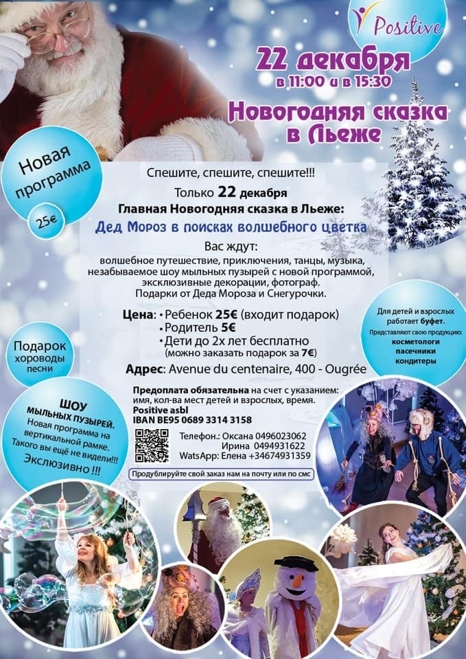 Окунитесь в атмосферу новогодней сказки. Приглашаем Вас на Новогоднюю вечеринку в Круибеке. Вас ожидает незабываемая Новогодняя - юмористическая программа от профессиональных ведущих и музщыкантов : Иван и Анастасия, вуэт « Кармен » Театрализованное шоу с подарками для детей и участием Дада Мороза и Снегурочки. Кперитив с колоритом. Широкий ассортимент изыскаееых холодных блюдпорадует Вас своим изобилием. Праздичный горячий буфет. Фруктово-десертный стол, безалкогольные напитки. Спиртное можно апинести с собой или приобрести у нас. Окунитесь в атмосферу новогодней сказки. Мы ждём Вас. Елена. Дорогие друзья! Скоро Новый год и Рождество, а значит, приближается период ёлок, концертов, встреч и других праздничных мероприятий. Как можно более полную информацию о них мы постараемся, как всегда, поместить в разделе "Афиша" сайта БФРО. Присылайте нам свои объявления! А это первое и самое новогоднее!