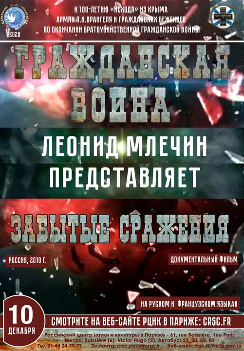 Affiche. CRSC. Paris. Conférence historique. Exode russe. 100e anniversaire. 2020-12-01