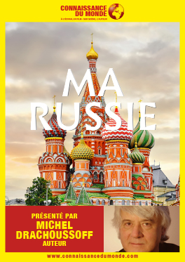 A l'écran, un film - sur scène, l'auteur : Michel Drachoussoff. Chers Amis, Connaissez-vous Michel Drachoussoff ? Si oui, je n’ai pas à vous le présenter, si non, je vous propose de le découvrir ici. Michel est un cinéaste et conférencier de talent, issu de l'émigration russe installée en Belgique dès les années ‘20. Ayant grandi au Congo belge, son goût de l’aventure lui est probablement venu de cette époque … Depuis il parcourt le monde d’où il nous ramène des reportages que les cycles « Explorations du Monde » et autres promoteurs de découvertes du monde, ont largement mis à leurs programmes. « Ma Russie » est le dernier reportage de Michel Drachoussoff. Sans aucune prétention à vouloir s’approprier le pays de ses ancêtres, Michel présente la Russie qu’il aime, telle qu’elle est, telle qu’il la voit, avec ses « meilleurs » et ses « pires » … sans aucune compromission. Bouclé à Bruxelles en décembre 2019, c’est dans la région Auvergne-Rhône-Alpes que « Connaissance du Monde » a décidé de mettre « Ma Russie » à son programme pour les mois de mars et première moitié d’avril. Programme de conférences : | mars 2020 | ville | avril 2020 | ville |
