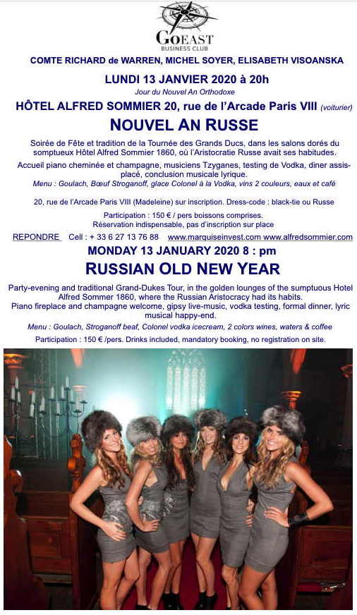 Le prix de 35 euros comprend : dîner russe (apéritifs, entrée, plat dessert, boissons) Animation musicale Réservation obligatoire au 03 89 76 22 11