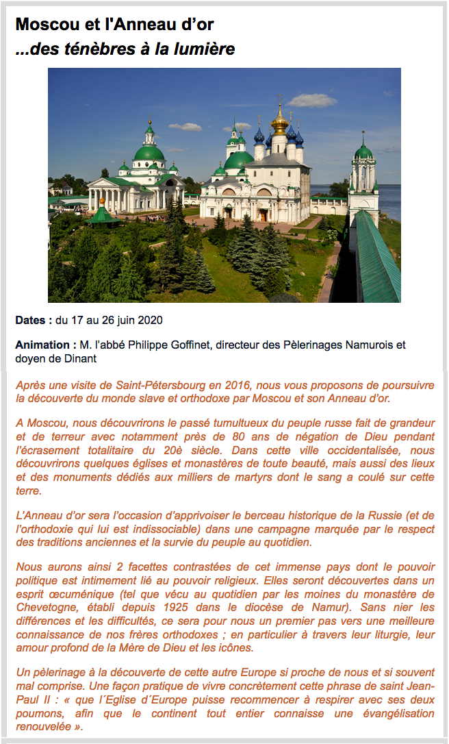 Сайт/Site : http://www.pelerinages-namurois.be/index.php/nos-destinations/russie2020