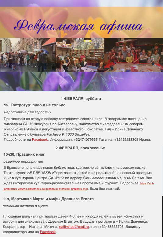 Календарь мероприятий, связанных с русской культурой в Бельгии