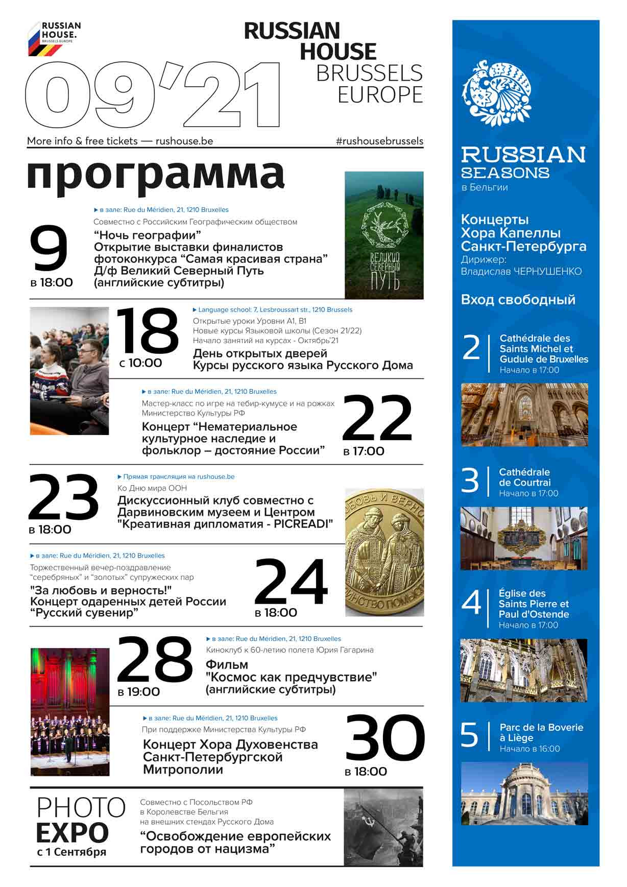 Affiche. Maison russe, Bruxelles. Programme des activités culturelles de septembre 2021