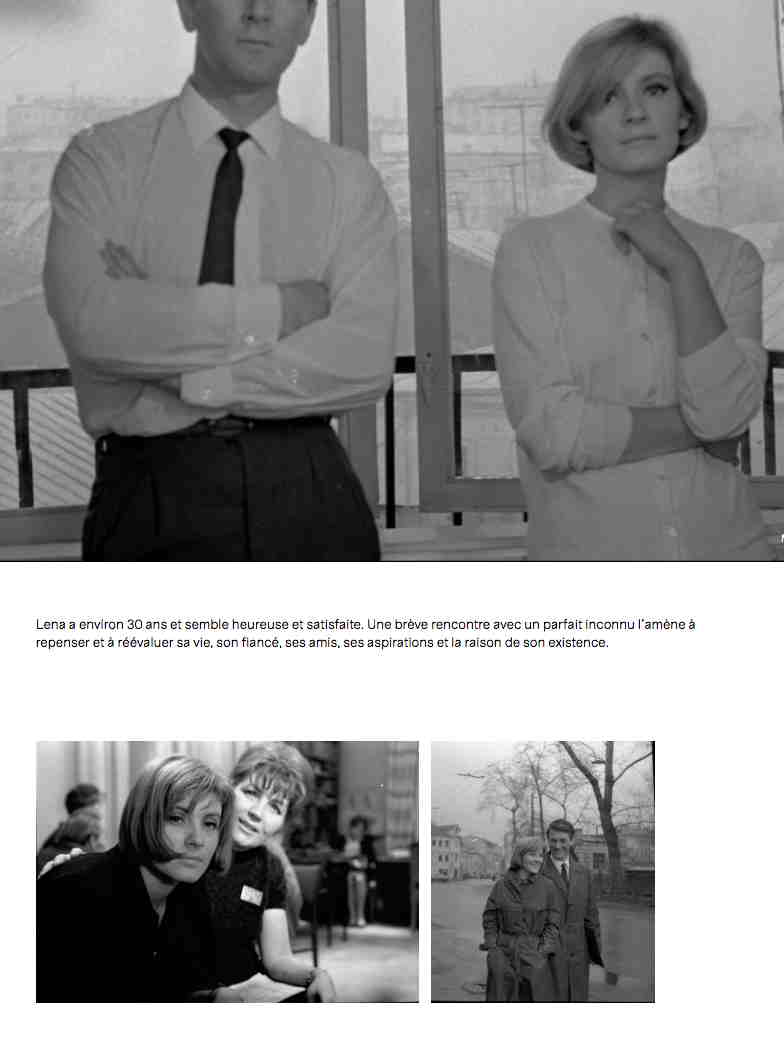 Film. Langue : Russe / Sous-titres : Anglais Russie, 1966, DCP, russe, ST : anglais, 108' Lena a environ 30 ans et semble heureuse et satisfaite. Une brève rencontre avec un parfait inconnu l'amène à repenser et à réévaluer sa vie, son fiancé, ses amis, ses aspirations et la raison de son existence. Acteurs : Aleksandr Belyavskiy, Aleksandr Mitta, Evgeniya Kozyreva, Evgeniya Uralova, Yuriy Vizbor