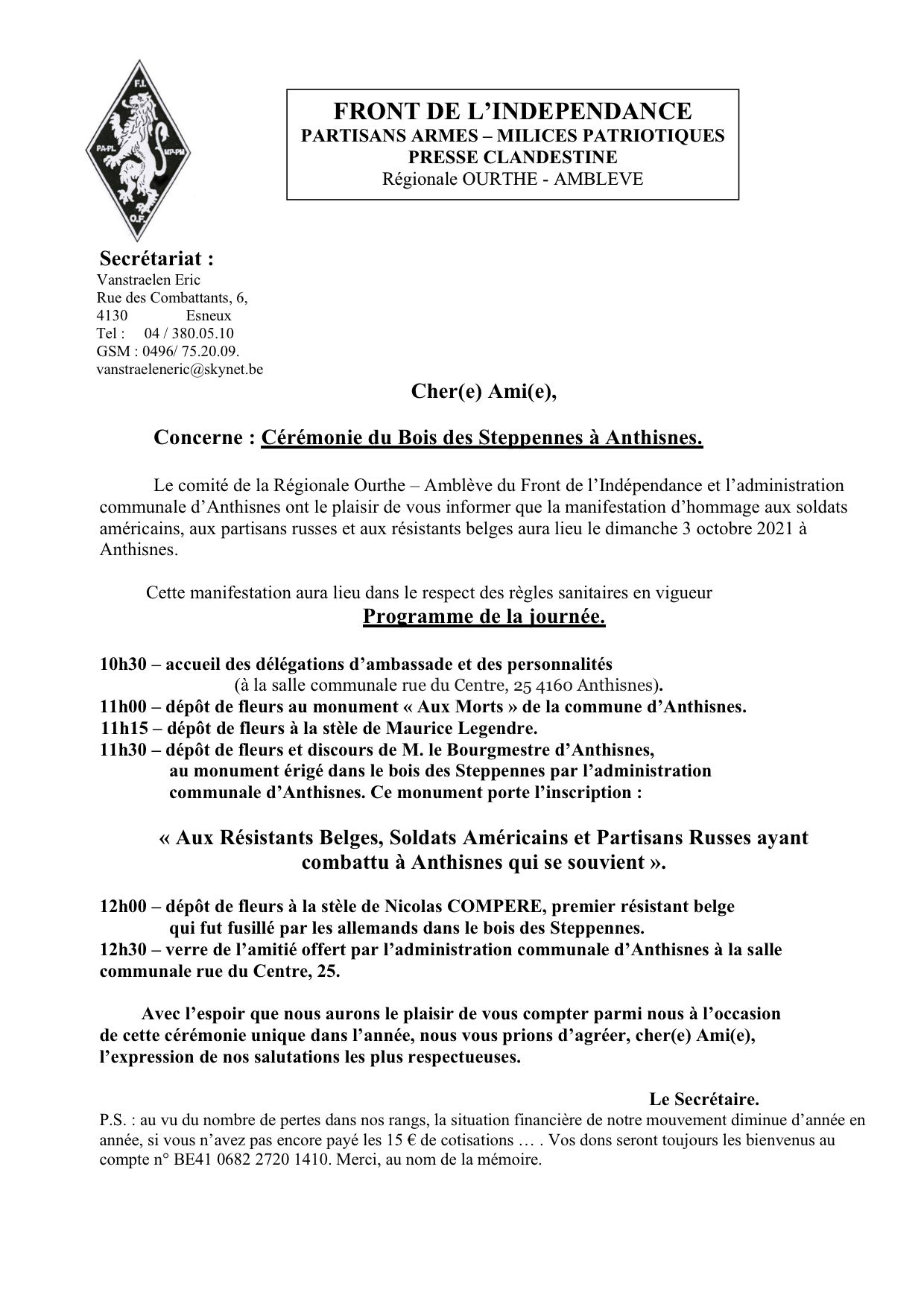 Pour toute modification/addition contacter par courriel  sacha underscore troiepolsky at yahoo dot fr  ou téléphone +32 (0)486 04 04 22