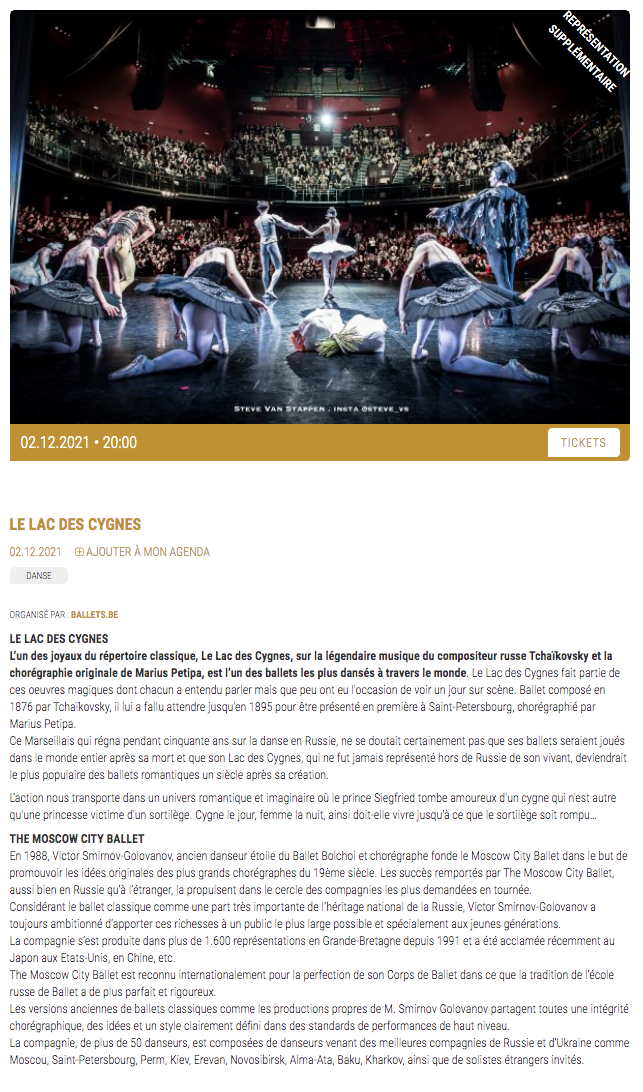 Сайт/Site : https://www.concertgebouw.be/en/the-swann-lake-1