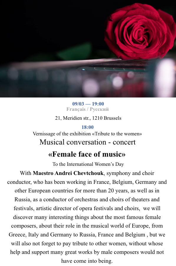 Entrée libre sous réservation Russian House Brussels / Téléphone : +32 2 219 01 33 / Courriel : belgium at rs.gov.ru