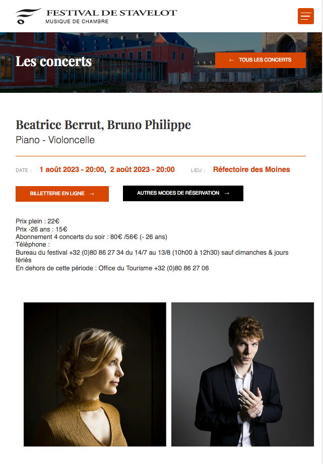 Сайт/Site : https://www.festivaldestavelot.be/concerts/beatrice-berrut-bruno-philippe/8549/