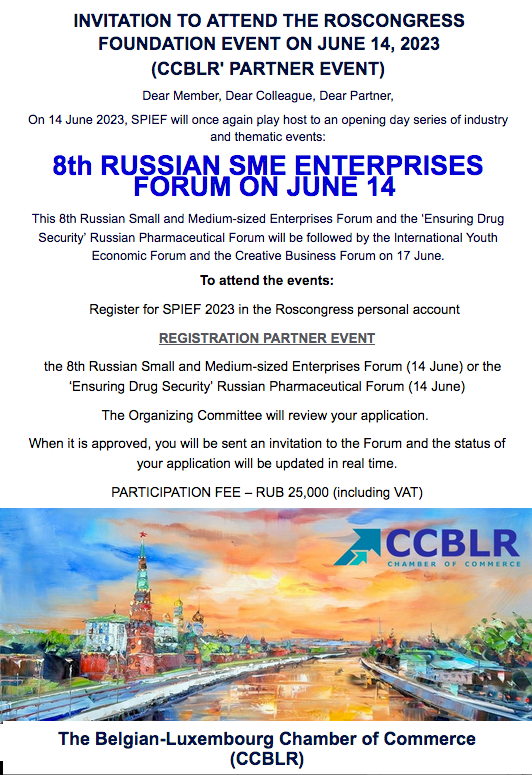 Registration : CCBLR Members: are welcome Non-members : according to CCBLR internal approval compliance Location : Online (link will be sent out to the participants one day before the event) Please note that for participation, registration is required: To register, click here. We look forward to seeing you! For more information and any questions, please don't hesitate to contact us by email : LEGAL at CCBLR.COM or by phone +74994907767 in Russia, or +35227861101 in Luxembourg and Belgium