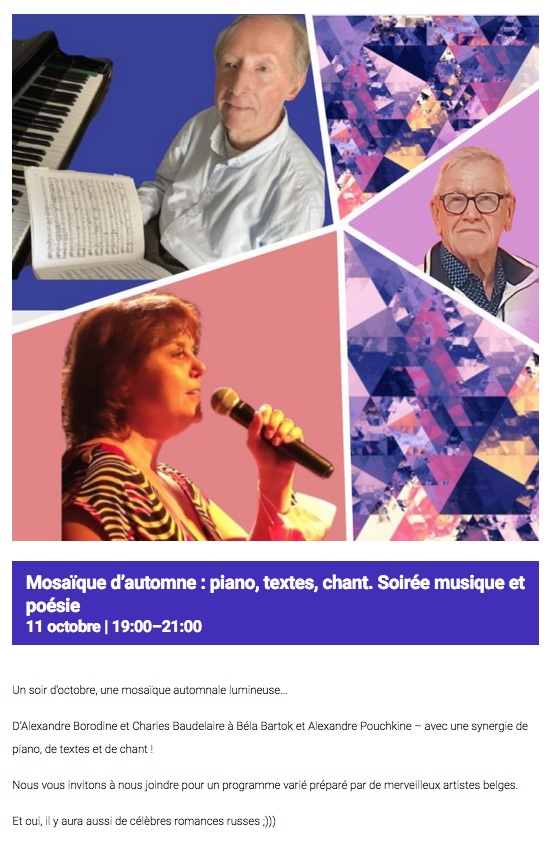 Сайт/Site : https://rushouse.be/fr/event/mosaique-d-automne-piano-textes-chant-soiree-musique-et-poesie/