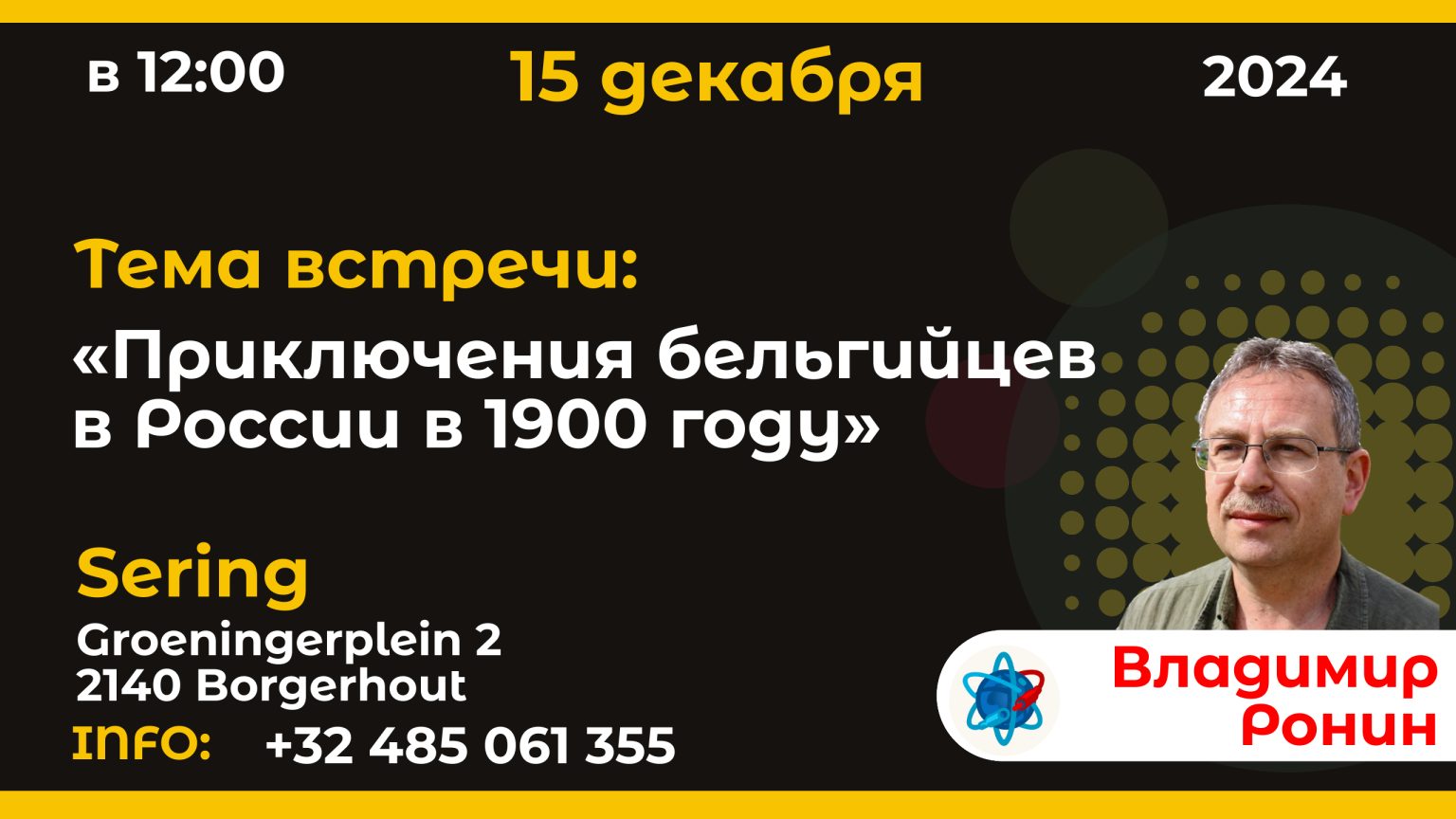 |  | 16 décembre 2024 19:00–21:00 Émile Verhaeren et les Russes : Que reste-t-il de nos amours? Conférence du prof. Vladimir Ronin. |