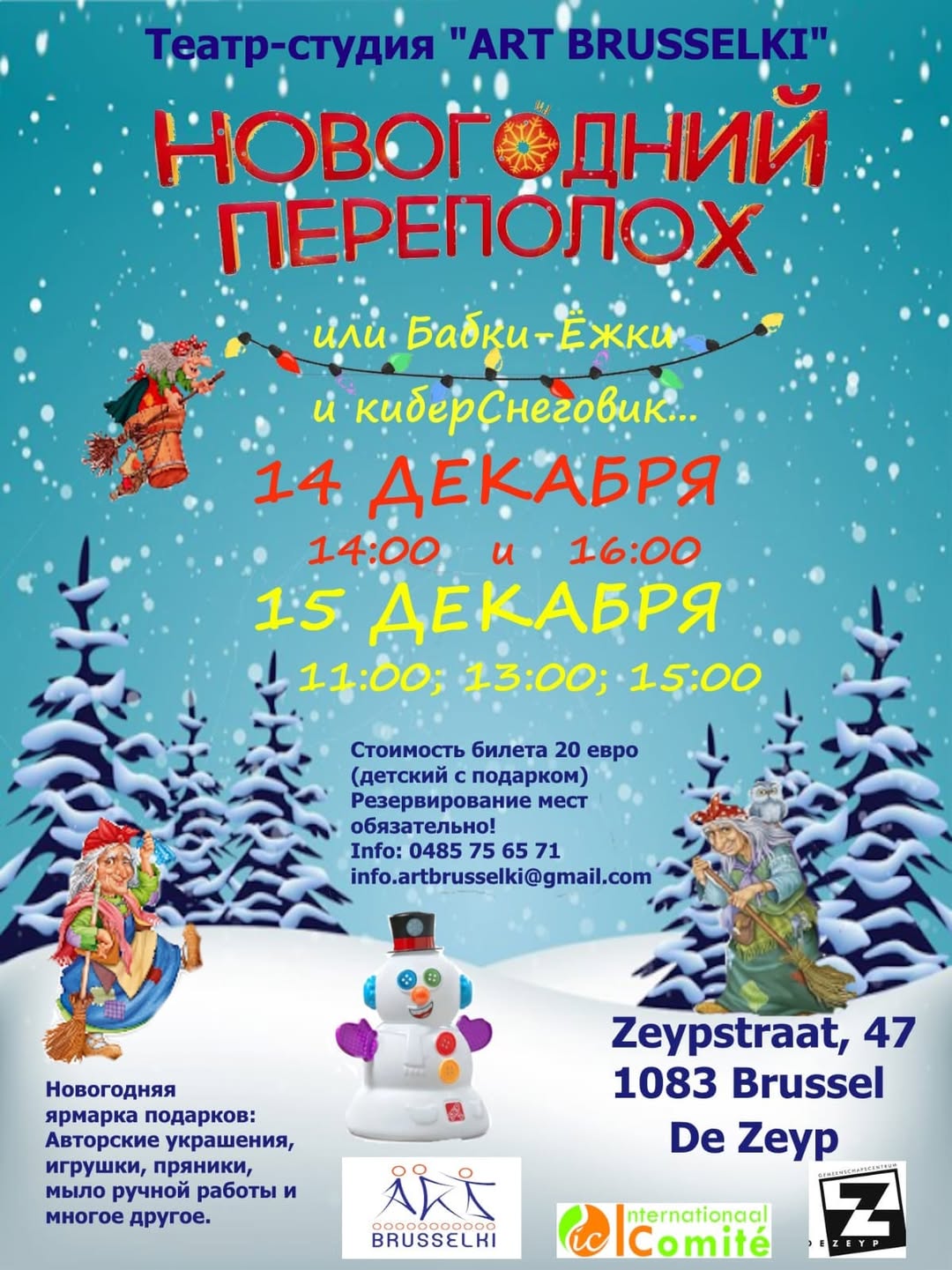 Дополнительная информация : info.artbrusselki at gmail.com Расчётный счёт для оплаты : BE 34 7350 2399 8390 Стоимость билета: 18 евро. В строке комментариев укажите вашу фамилию и дату спектакля.