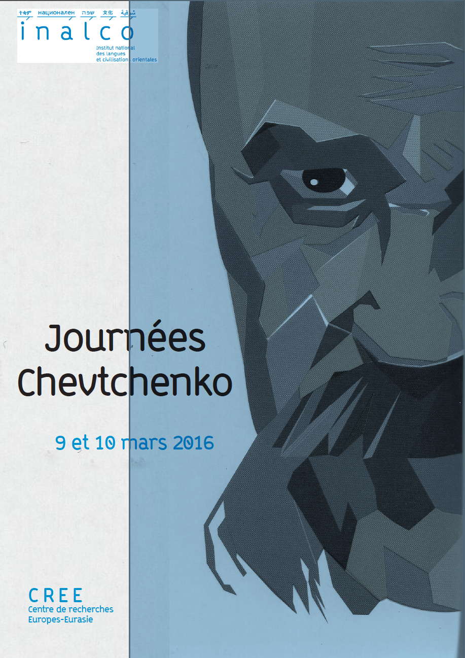 poète et peintre ukrainien du XIXe siècle CREE Centre de recherches Europes-Eurasie i n a l c o - Institut national des langues et civilisations orientales 9 mars 2016 - Auditorium 15h00 Présentation du numéro de Slovo Vol. 45-46 consacré àTaras Chevtchenko (1814-1861) hommage au poète ukrainienà l'occasion du bicentenaire de sanaissanceCe 15h30 Chevtchenko cinéKobzarisé par Lubomir Hosejko 16h00 Projection du film Taras Chevtchenko de Piotr Tchardynine (première partie) 17h30 Pause café 18h00 Projection du film Taras Chevtchenko de Piotr Tchardynine (deuxième partie) Cocktail