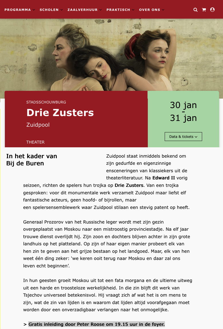 Сайт/Site : https://www.zuidpool.be/nl/producties/739/drie-zusters/zuidpool