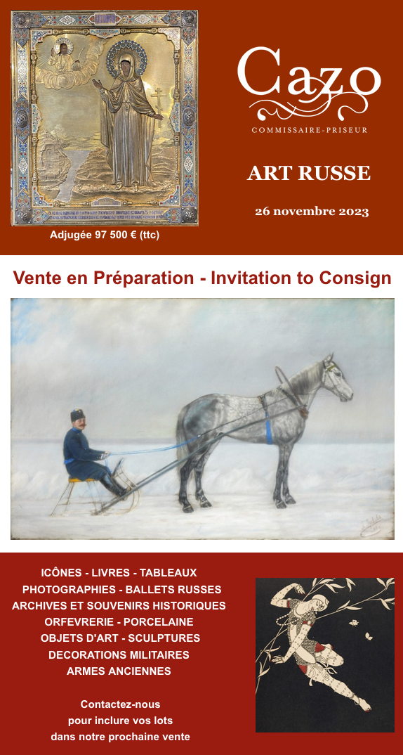 Illustration. Maison de ventes Cazo. Art russe. Vente en préparation - Invitation à consigner. 2023-11-26
