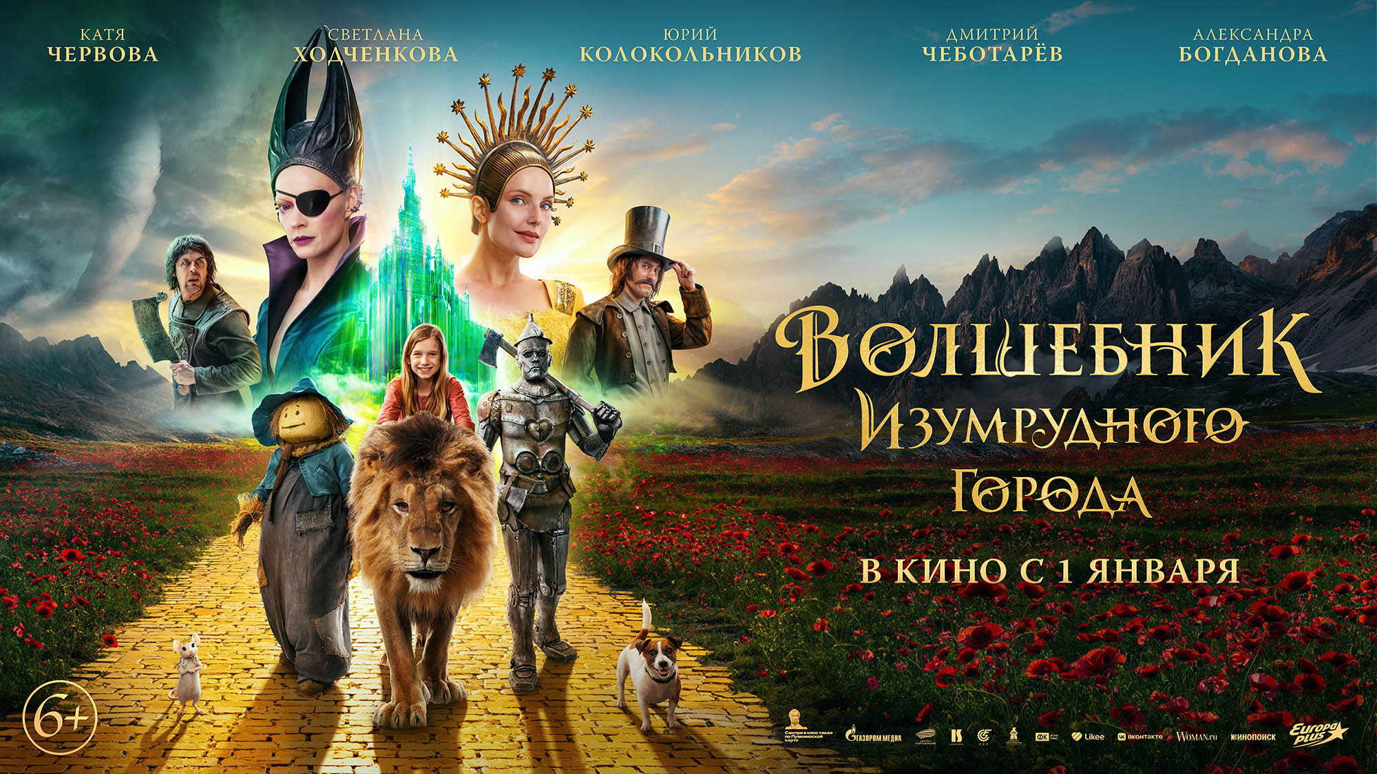 La route pavée de briques jaunes. Le merveilleux Magicien de la Cité d'Émeraude. Будущий художественный фэнтезийный фильм российского режиссёра Игоря Волошина, экранизация одноимённой сказки Александра Волкова, основанной на переработке сказки Фрэнка Баума «Удивительный Волшебник из Страны Оз». Премьера картины запланирована на 1 января 2025 года. В главных ролях Екатерина Червова, Юрий Колокольников, Евгений Чумак, Артур Ваха, Дмитрий Чеботарёв и Светлана Ходченкова.