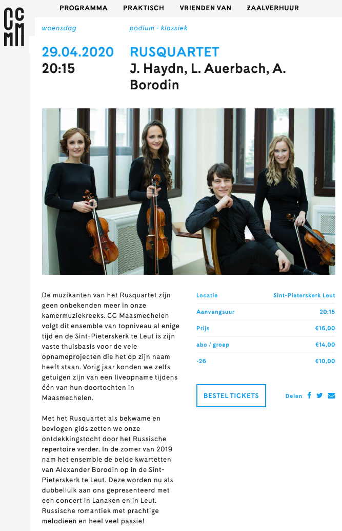 Page Internet. CCMM. Maasmechelen. Rusquartet in Europe 2020. 2020-04-29