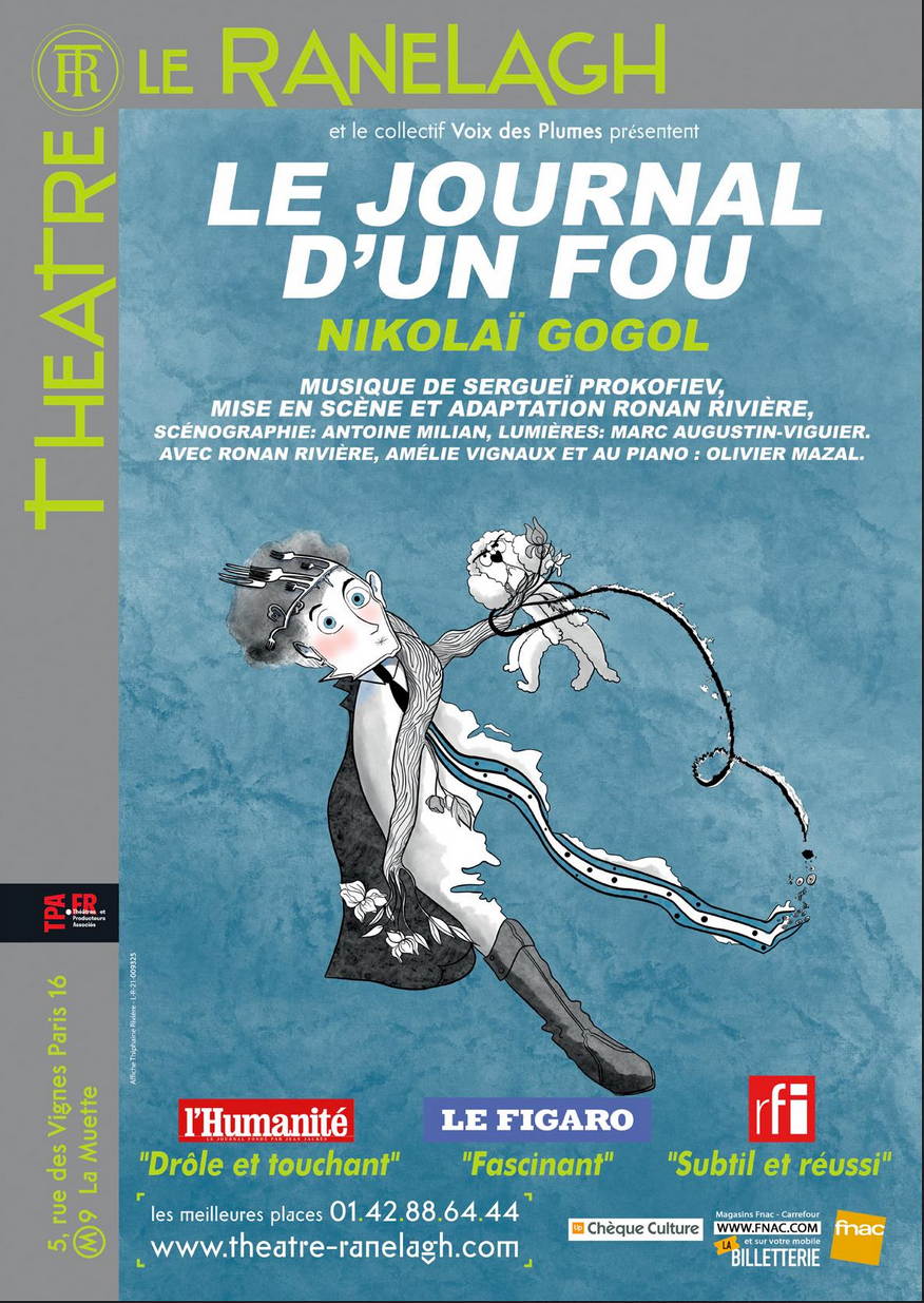 https://www.theatreonline.com/Spectacle/Le-Journal-d-un-fou/87248 https://www.theatre-ranelagh.com/spectacle/le-journal-dun-fou/